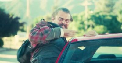 As with many Hollywood releases these days, ONE BATTLE AFTER ANOTHER involves a formerly heroic, broken-down middle-aged man whose legacy is furthered by a plucky young woman. The man is the Leonardo DiCaprio played Bob (or Pat), who formerly ran with an underground movement called French 75 in an alternate universe America. He currently lives with his mixed-race teenage daughter Willa (Chase Infiniti), who seems impossibly well-adjusted despite having after being raised by this loser; the relationship works nonetheless due to the performances of DiCaprio and Infiniti, and the autobiographical resonance (Anderson is himself the father of mixed-race children).