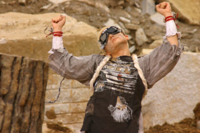 The sixth dream concerns a weird dude named Unkei, a robotic dancer and sculptor. He’s damn proficient at the latter profession, with a talent for chopping woodblocks from which fully formed sculptures emerge. An onlooker decides to use Unkei’s method to create his own sculptures, and, needless to add, fails.