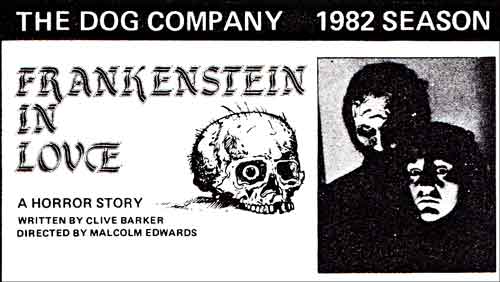 In short, you shouldn’t expect polish or refinement from FRANKENSTEIN IN LOVE, OR THE LIFE OF DEATH. Initially drafted back in 1981, it was, like all of Barker’s plays, performed by his self-created Dog Company on a ridiculously low budget. He claims that “Several audience members were driven from their seats by the intensity of it all,” which I say constitutes a strong recommendation.