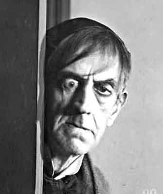 From a pictorial standpoint BUCKET OF BLOOD outdoes any of the CABINET OF DR. CALIGARI wannabes (such as GENUINE and THE ETERNAL MASK) that appeared in the two decades following that iconic film’s 1920 release. Director Brian Desmond Hurst displays a visual confidence and bravura that belay the fact that this was his feature debut (he’d go on to direct many more films, including classics like ALIBI and the 1951 version of A CHRISTMAS CAROL). In addition to CALIGARI, a comparison can be made to the work of Hurst’s fellow countryman Alfred Hitchcock, a filmmaker who was also heavily influenced by German expressionism, and also utilized it quite brilliantly.