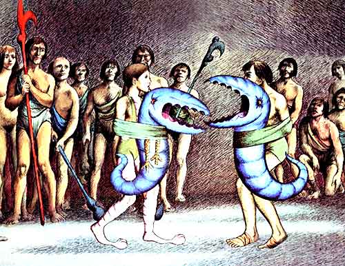 As a political allegory the story’s bonafides are pretty obvious, with oppression, revolution and pacifism all given lip service, but the film functions best as a psychedelic spectacle. The Roland Topor created imagery, which includes heads detaching from bodies in a meditation ritual that sees those heads fastening onto the necks of statues that then perform bizarre fertility dances, diamonds springing up from the ground and torsos literally twisting themselves into knots and coalescing into the bodies of others, has am curiously elemental quality that nearly forgives the dialogue, which is uniformly flat and expository (with the Oms and Draags conveniently speaking the same language). In truth the film would probably have worked better without dialogue.