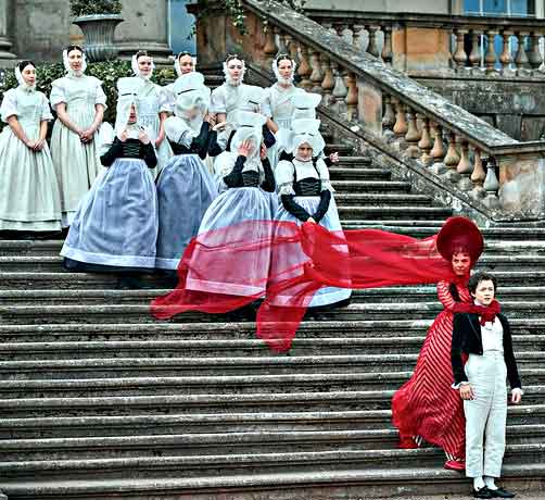 Teaming up with the dying ex-surgeon Harlander (Christoph Waltz), and romancing the latter’s niece Elizabeth (Mia Goth again), Victor moves into an uber-gothic tower where “For the first time I became more interested in life, and somewhat less interested in death.” Utilizing corpses left behind by the Crimean War, Victor creates the Creature, and brings it to life in a lightning storm, during which Harlander falls to his death (a death Victor pins on the Creature). Elizabeth develops an immediate rapport with the Creature, while Victor, deciding that his creation is intellectually deficient, elects to dispose of it by burning down the tower.