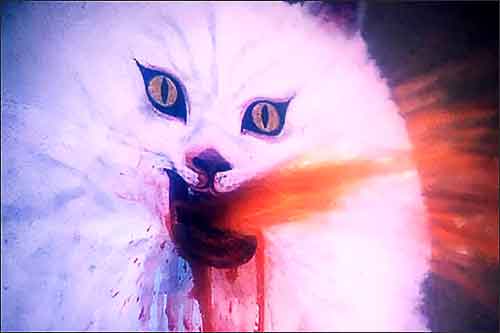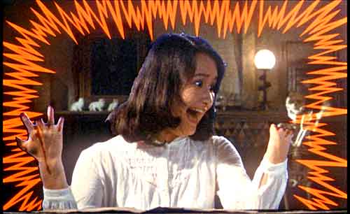 To call this film bizarre would be an understatement. Obayashi’s ultra-stylized approach takes some getting used to; the whole thing is deliberately artificial and decked out with stylistic quirks (irises, superimpositions, etc.) that serve no apparent purpose. The tone is set by the opening credits, with the title “HOUSE” imprinting itself in lurid, cartoony style, and the O becoming a toothy mouth.