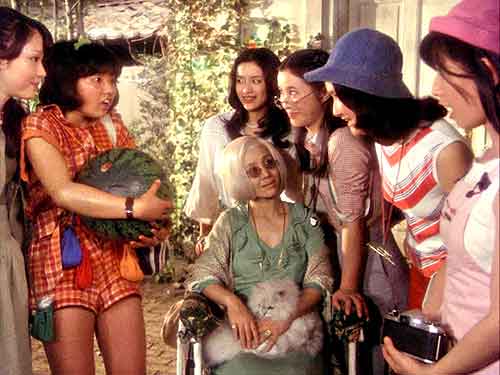 HOUSE‘S director Nobuhiko Obayashi is quite a cult figure in his native Japan. This 1977 film (a.k.a. HAUSU) was his first, and he’s gone on to make at least a dozen more, including SUMMER WITH GHOSTS (1989) and THE DRIFTING CLASSROOM (1991), most of them dealing, as this film does, with the complexities of adolescence. So highly regarded is Obayashi that he’s widely referred to by a nickname, Obi, and has much of his work classified as “Ominichi,” the name of the resort town where “Obi” grew up, and where HOUSE and many other of his films were shot.