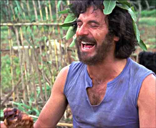 Depending on one’s point of view, the third act can be seen as a complete fail or the logical completion of a stylistic trajectory whose grasp of reality was shaky from the start. In this portion the woman takes to doing everything in the nude, and the dog becomes attracted to her(!) while the two men elect to have sex with each other, and in so doing burn down the makeshift hut in which they’ve been residing. A final confrontation awaits, from which only one of the woman’s three male suitors will walk away.