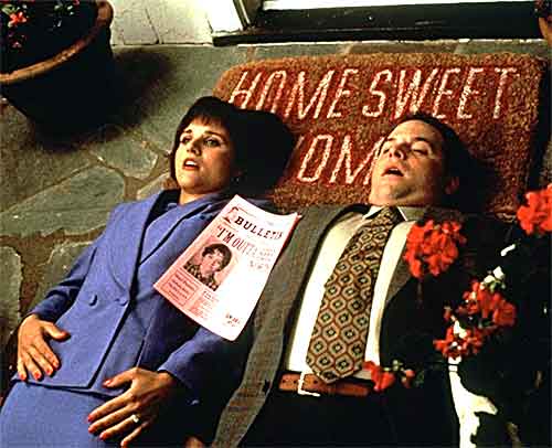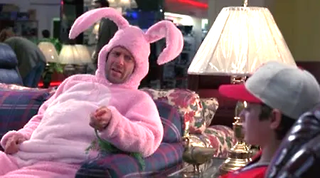 Throughout it all, a man (Bruce Willis) costumed as a bunny in the opening scenes turns up in various guises: a cowboy, a standup comedian, a FedEx driver, etc. Precisely what function this character serves (he’s been dubbed a “guardian angel,” but what exactly is he guarding North from?) I’m not entirely sure, nor am I too clear on the character of Al (Robert Costanzo), who likewise assumes different guises, including that of a hired assassin who tries to shoot North. Not to worry, though, because all this nonsense is revealed to be (Spoiler Alert!) an elaborate dream.