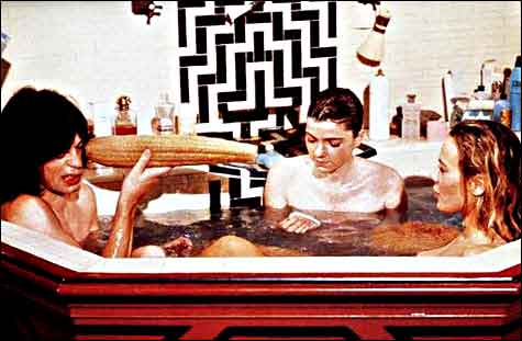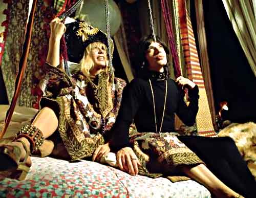 In search of a place to hide out, Chas overhears a man talking about a basement apartment that’s just become vacant, located in a building owned by Turner (Mick Jagger), a retired rock star. The place is, in Chas’s words, a “freakshow,” with rococo architecture, highly exotic African inspired décor and two equally exotic seductresses (Anita Pallenberg and Michele Breton) afoot.