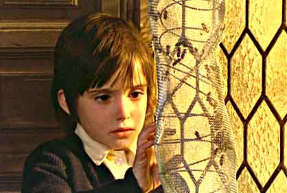 Erice favors wide shots and deliberate pacing (a static shot of a woman lying in bed lasts a full two minutes). Dissolves are also an important component, evocative as they are of listlessness and despair; dissolves provide some of the film’s best moments, such as Ana’s point-of-view shot of her face reflected in water…which turns into that of Frankenstein’s monster. Or an extraordinary fixed camera time-lapse shot that has the youthful protagonists exiting an afternoon shot and then re-entering it the next morning, all in space of a few seconds.